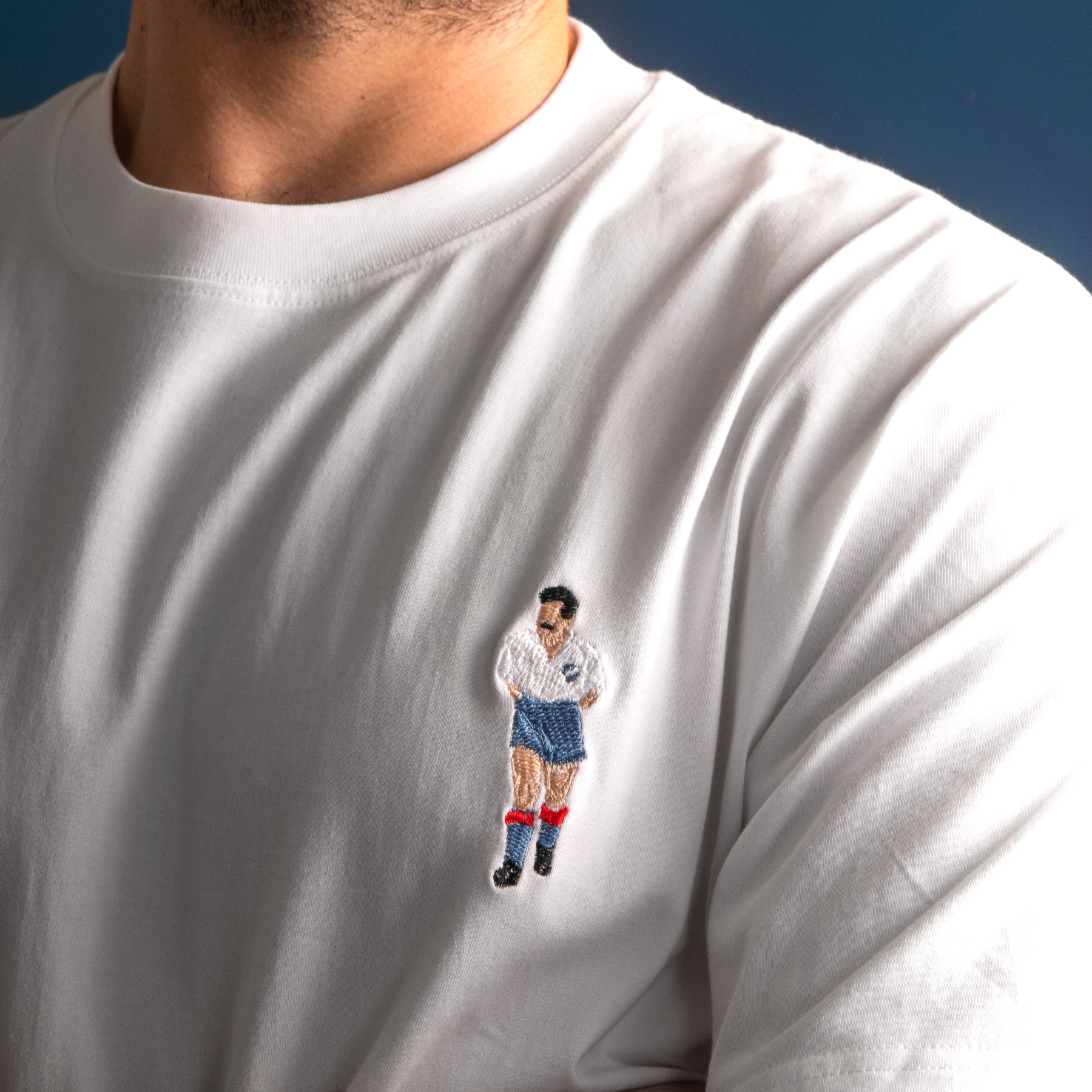 Remera premium de algodón de alto gramaje y doble costura, con un bordado original en homenaje al máximo goleador clásico, Atilio García.